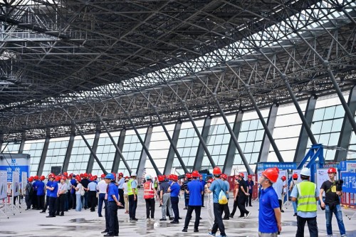 10月15日,2025年中国钢结构大会智能建造技术观摩会在中建二局承建的南宁吴圩国际机场T3航站楼二标段召开。 200余名钢结构行业专家在现场观摩了国内大型机场的钢结构智能建造技术。本次活动由中国钢结构协会主办,中建二局安装公司承办。