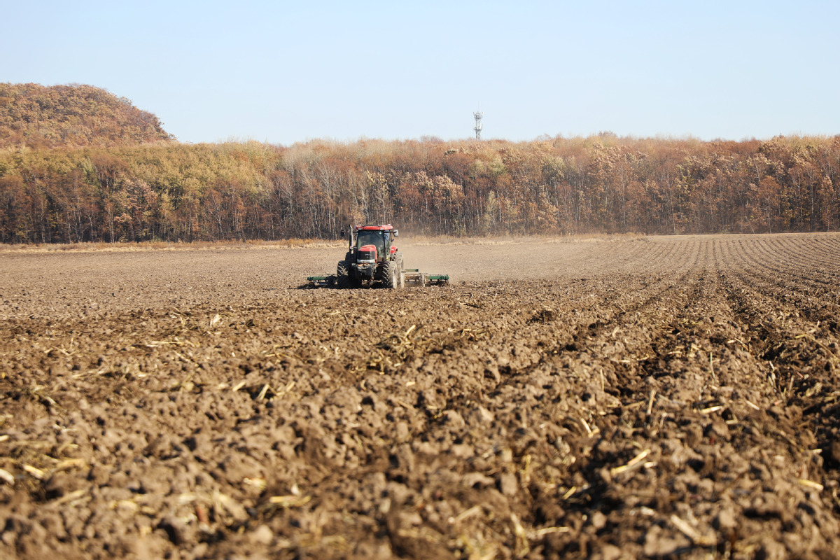 在胜利农场第五管理区,配备旋耕设备的大马力拖拉机在田间来回作业,快速碾碎、耙动大块土根和农作物,原本粗糙的地表很快变得光滑细碎。建三江分公司以“先耕后轮”为基本标准,提高整地质量配给。严格控制旋耕过程,深耕后进行细土处理,有效打破犁底层,细化土块,确保深耕层深、土壤平整、裂土光滑。最终达到了“平、匀、裂、净、润”的状态进行播种,真正实现了“翻一块、翻一块、达标”。