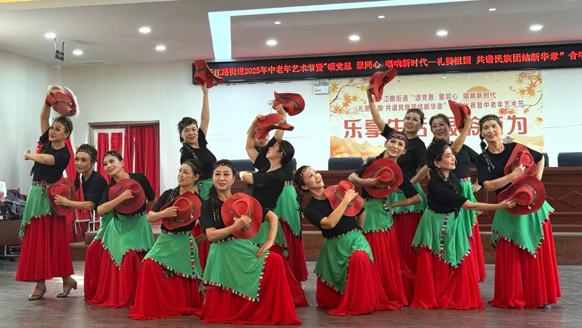 音乐响起,灯光亮起。在乌鲁木齐市萨伊巴克区扬子江路街道黑龙江社区活动中心,一位白发苍苍的老爷爷紧紧握住麦克风,声音洪亮地唱歌;身旁的舞伴脚步轻盈,笑容灿烂。这不是专业的比赛场地,而是2025中老年艺术节街头的场景——一个真正属于他们的闪亮舞台。