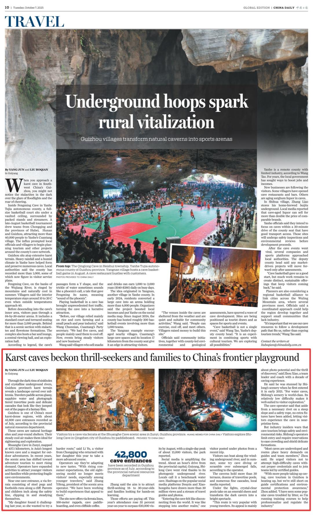 他补充道:虽然探洞活动频繁,贵州洞穴旅游持续走热,但目前行业仍面临四分之一短板:专业循环认证体系不完善与公众环保意识不足。我亲眼目睹了一些热门洞穴内的垃圾问题,因此正通过开展专业培训,推动行业向规范化、专业化转型。推动行业向规范化、专业化转型。(杨军刘伯千编译中国日报社贵州记者站)中国日报社贵州记者站)