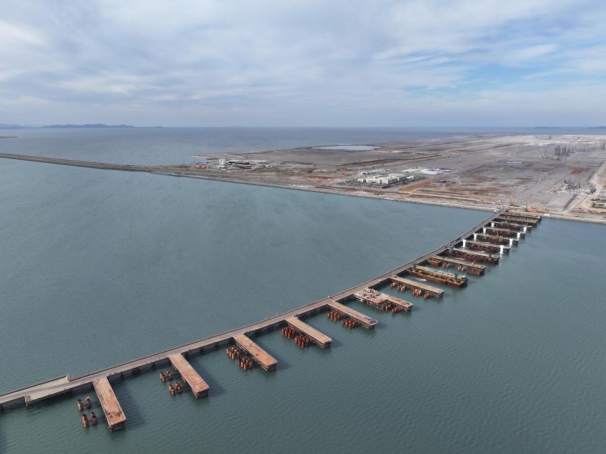 据中国交通建设公司第二航局大连新机场中线主航道工程副经理李恒介绍,由于海域内溶洞、空洞分布广泛,给桥梁基础施工带来了很大难度。该项目施工管理团队科学选用全套管后续法等施工方法,有效处理地下溶洞,促进桩基高效施工。针对冬季跨海施工的特殊环境和高腐蚀性的海洋环境,以及昼夜温差大、混凝土养护要求高等实际困难根据要求,加强混凝土生产和浇筑过程控制,加强桥梁工程耐久性管控,积极应对季节性和区域性挑战。